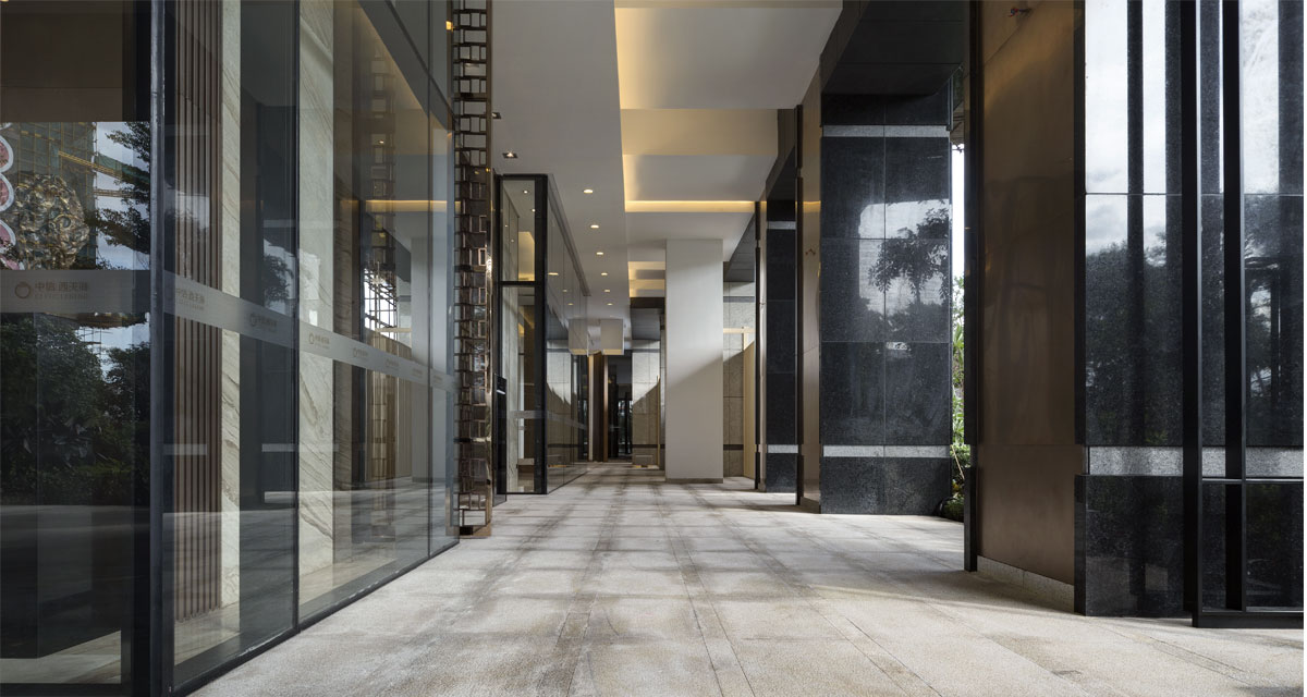 设计上,打破传统居所的平庸入户,充分重视室内外空间的衔接,揽园入内,成功地把住宅大堂与园林景观、江岸无缝对接,打破了室内外的空间界限,形成递进式分区,使公共空间更加丰富,舒适的尺度,宜人的空间,出入之间,私享的尊荣如影随形。更值得一提的是,大堂设计从养心、养神的需求出发,不仅营造出‘泛客厅’的居住理念,更将业主接友待客的区域,从私人空间延展到公共室外环境中来。大堂既是业主客厅的延续,更是邻里间亲近交流的平台。室内外空间的联系与流通,消弭了日渐冷漠的城市邻里关系,让‘西关大屋’的人文情怀在这里得到延续。